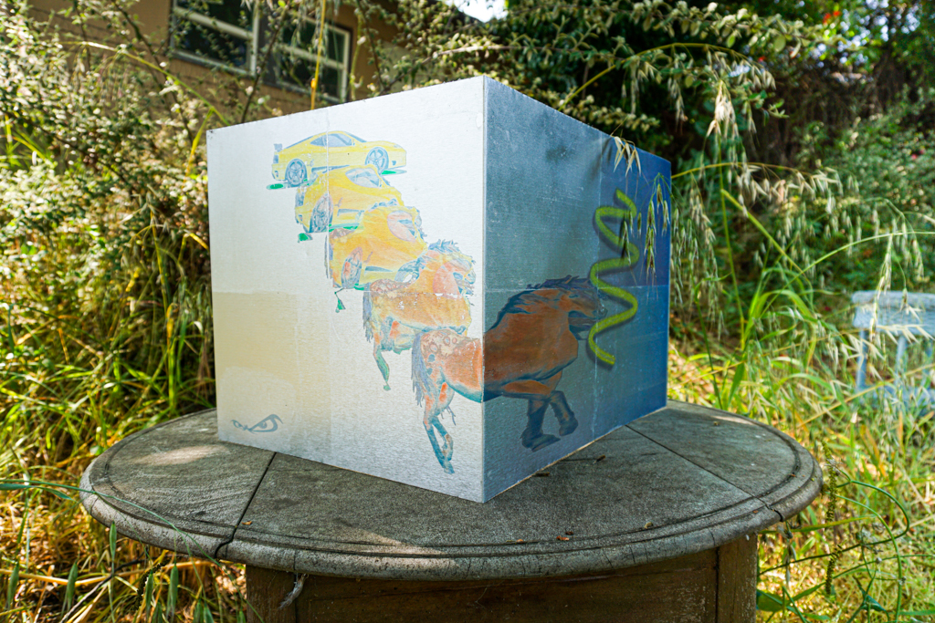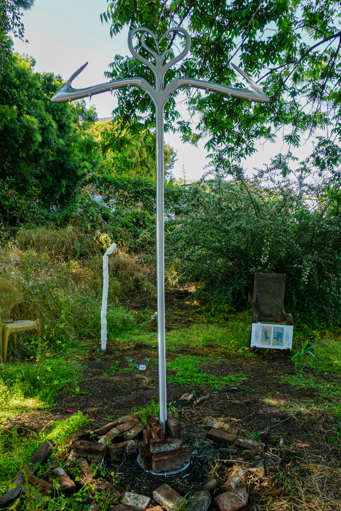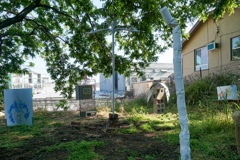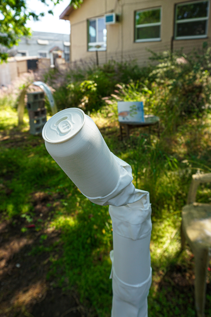 The new works have as their basis similar material and thematic monstrum. Quezada-Lee constructs a hybrid scepter/stripper pole with wings echoing those of Hermes’ caduceus from metallic 3D filament while Johst 3D prints a taped-together tower of crushed cans in emulation of the drinking game “Wizard’s Staff”. The works’ crosscutting–an untimely mixture of the ancient and the contemporary and their programmatic actualization of the virtual–align in a variety of ways across the matrix “for-and-against” power. They suggest not just Diderot’s monstrous “being(s) whose duration is incompatible with the existing order. “ but also Dick’s warning (monere) that: “the Empire never ended.”
