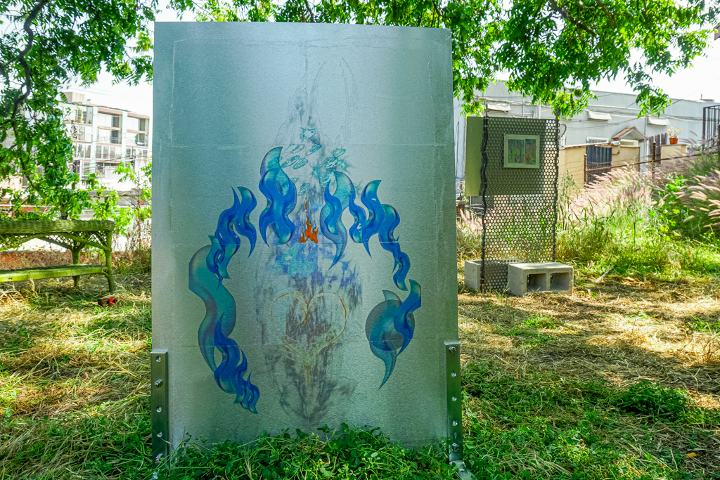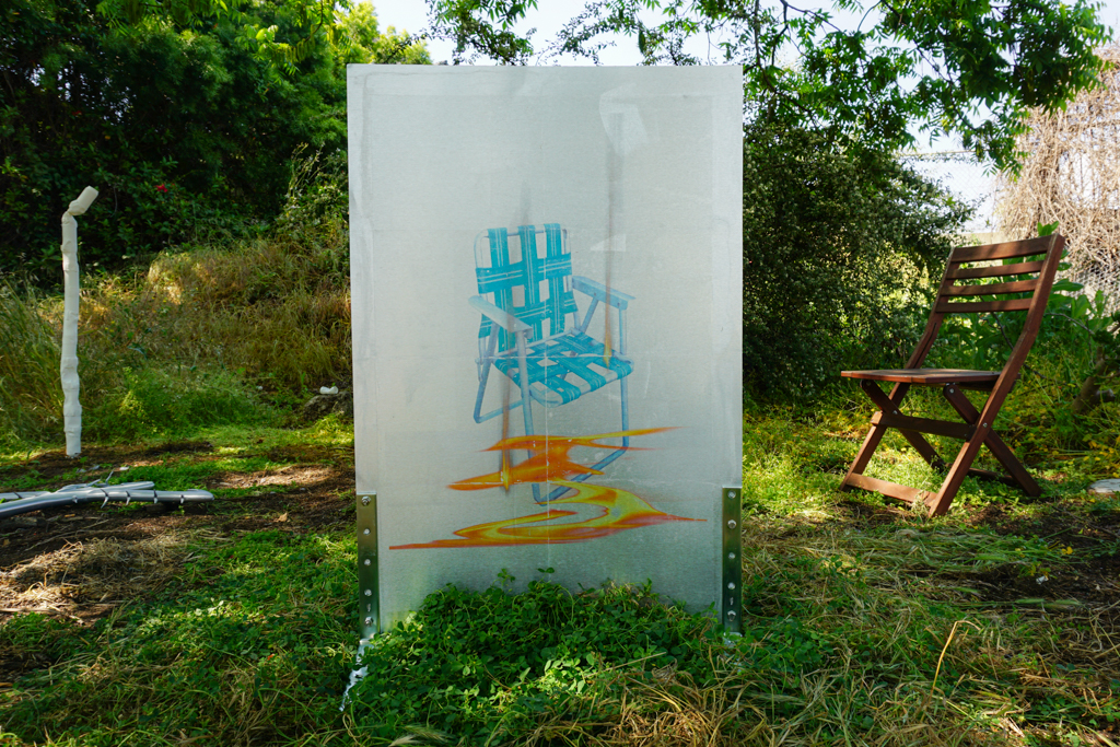 Quezada-Lee’s early work directly registers a matrix of raw feeling and art-historical tropes. To create it she carefully made up her face and cried real tears into pillows, couch cushions, and velvet, mounting the results on canvas to create Turin shrouds of actual emotion autorendered in facepaint. This emo AbEx suggests the frozen pathos of Bas Jan Ader or open-wound honesty of Tracey Emin. A more recent body of work is composed of gigantic hand-made armored ‘stripper heels’ and steel bunker-like shoes with razor-wire-esque defensive perimeters.