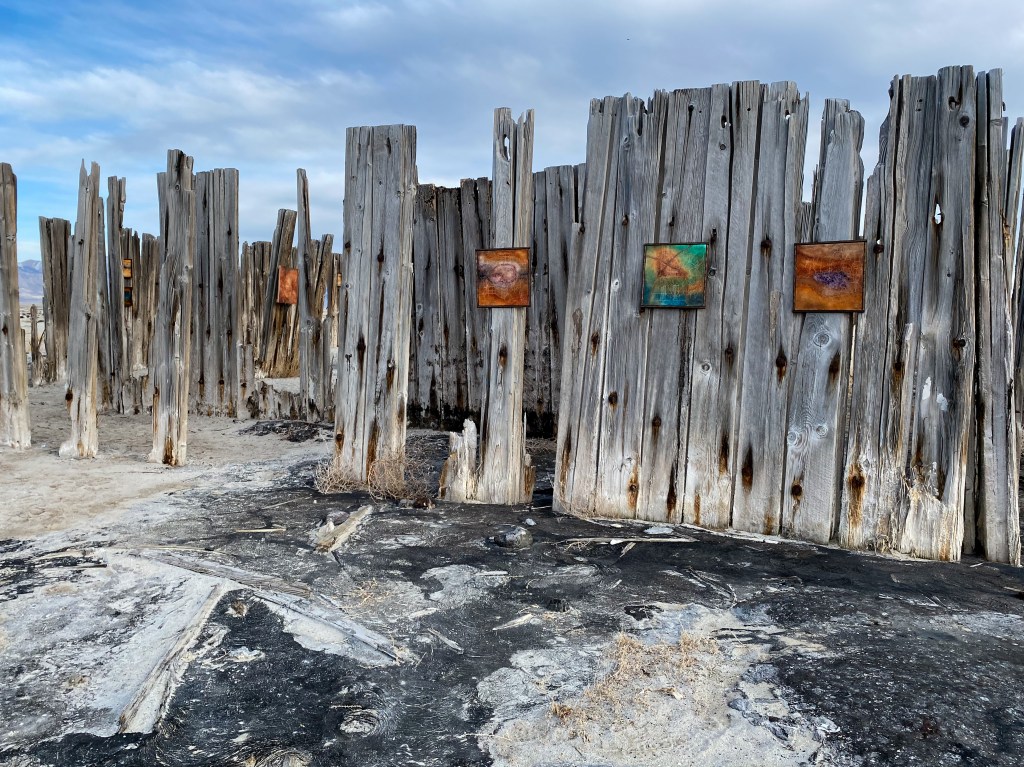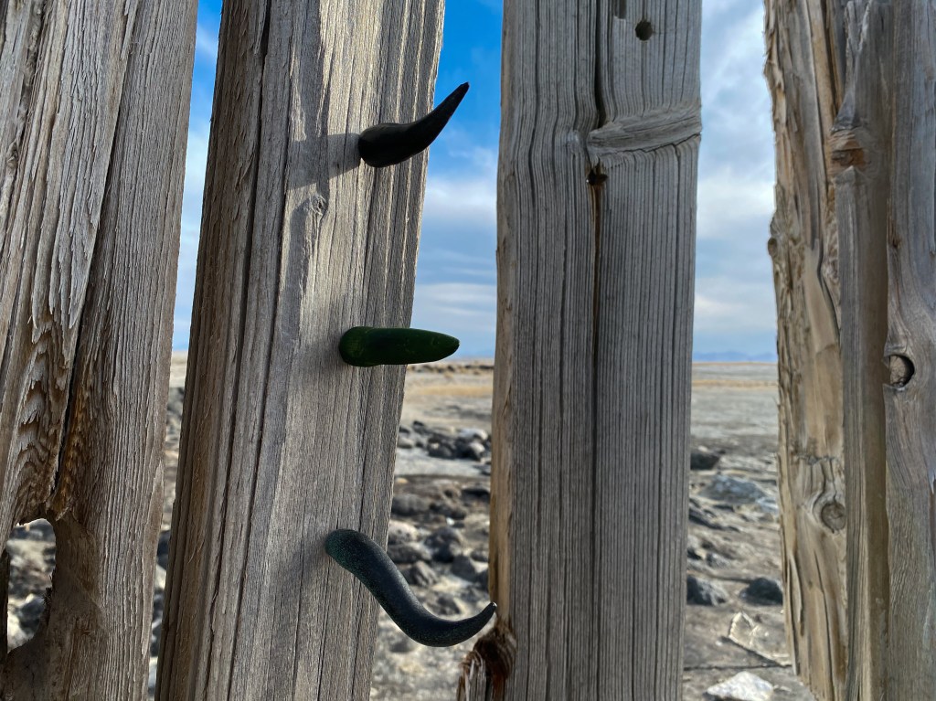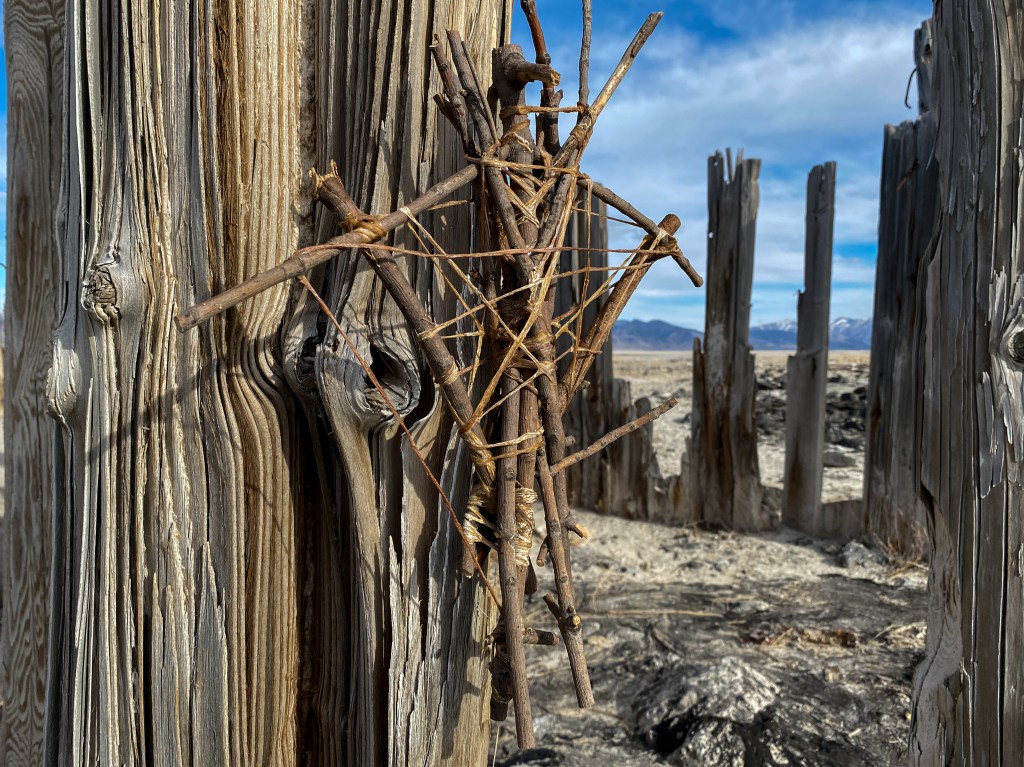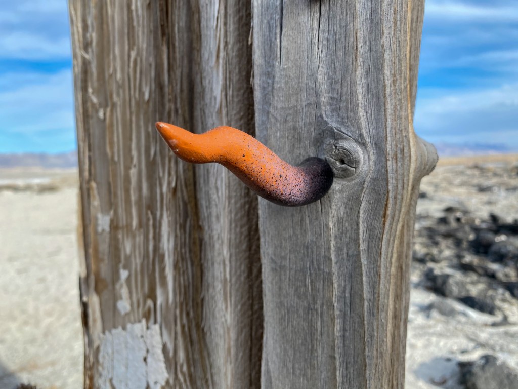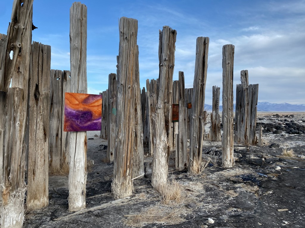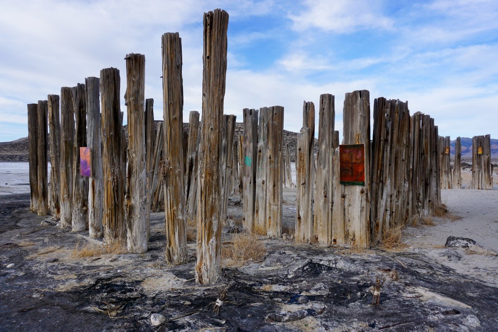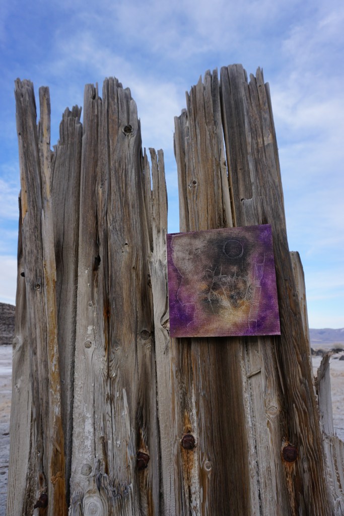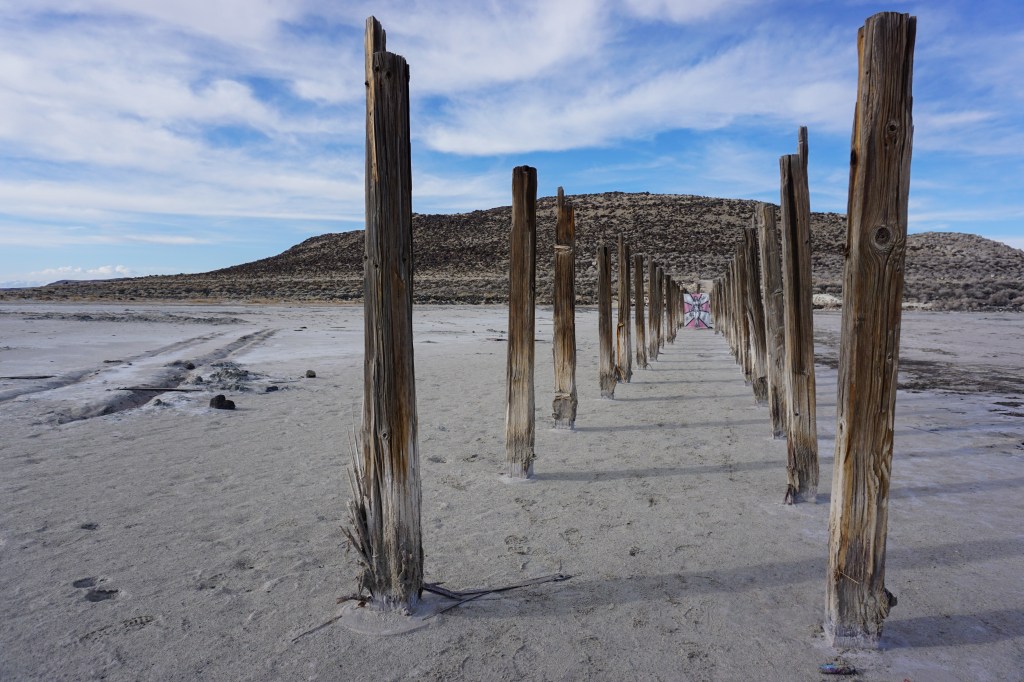 A fort-like, roofless structure juts out from the flat saline sands, situated about 150 yards south of the large hill that once spewed lava, then tumbled itself down, lower and lower, kissing the earth with as many spreading and dividing grains as possible. The nimble lake waves used to lap against it, but have crawled further and further away for four decades now. The fort stands at the foot of the flattening hill, the shoreline of the evaporating lake, and sits as the source of fossil liquid. It is the eye of the slowest storm. The wood grains of the structure have sunken and puckered. Seeping oil moves even slower than the ever-receding shoreline, determined to make a thick, cursed, black lake of its own. Bodies slowly chase and bind each other between seasonal tides as the hexed structure peers from between pillars at each of their shared, shallow, raspy breaths as the sun runs down the lake’s throat.