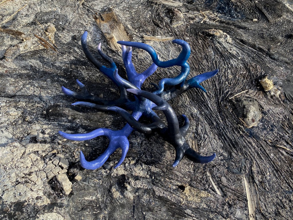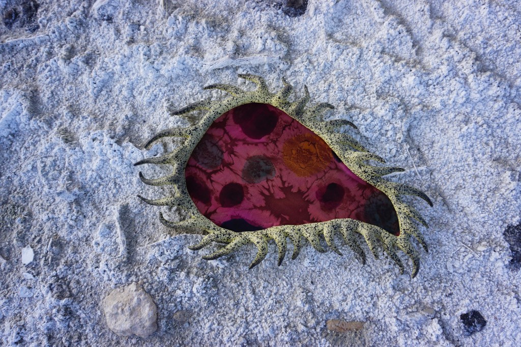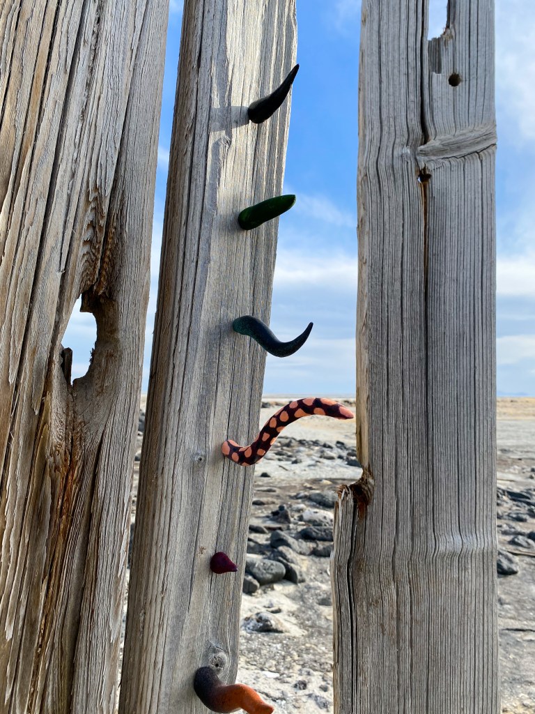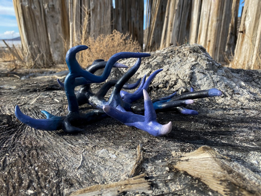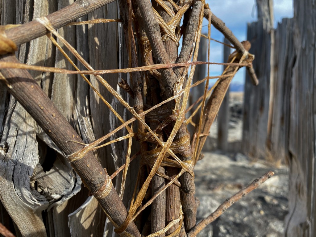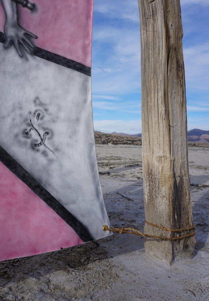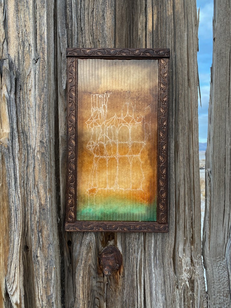 A fort-like, roofless structure juts out from the flat saline sands, situated about 150 yards south of the large hill that once spewed lava, then tumbled itself down, lower and lower, kissing the earth with as many spreading and dividing grains as possible. The nimble lake waves used to lap against it, but have crawled further and further away for four decades now. The fort stands at the foot of the flattening hill, the shoreline of the evaporating lake, and sits as the source of fossil liquid. It is the eye of the slowest storm. The wood grains of the structure have sunken and puckered. Seeping oil moves even slower than the ever-receding shoreline, determined to make a thick, cursed, black lake of its own. Bodies slowly chase and bind each other between seasonal tides as the hexed structure peers from between pillars at each of their shared, shallow, raspy breaths as the sun runs down the lake’s throat.