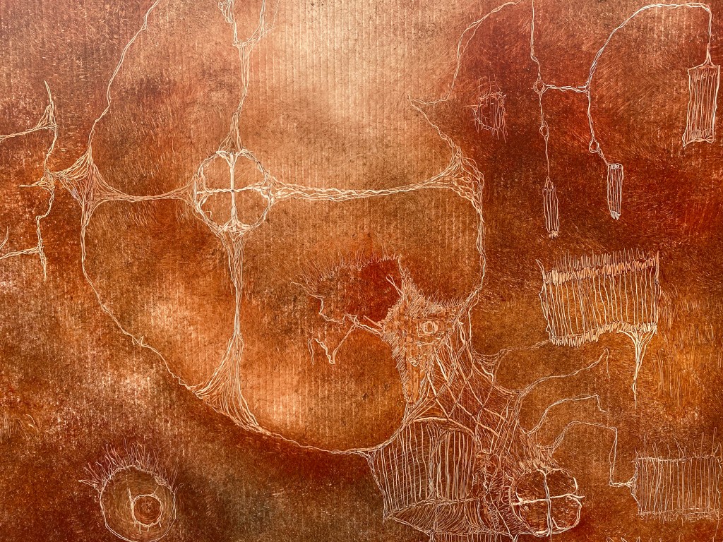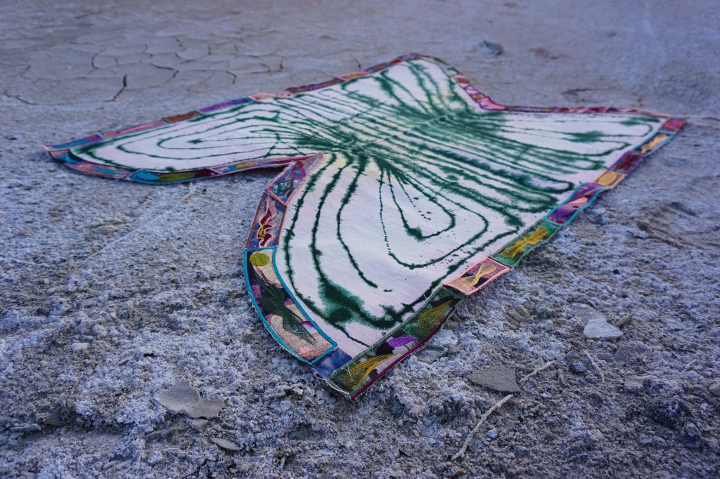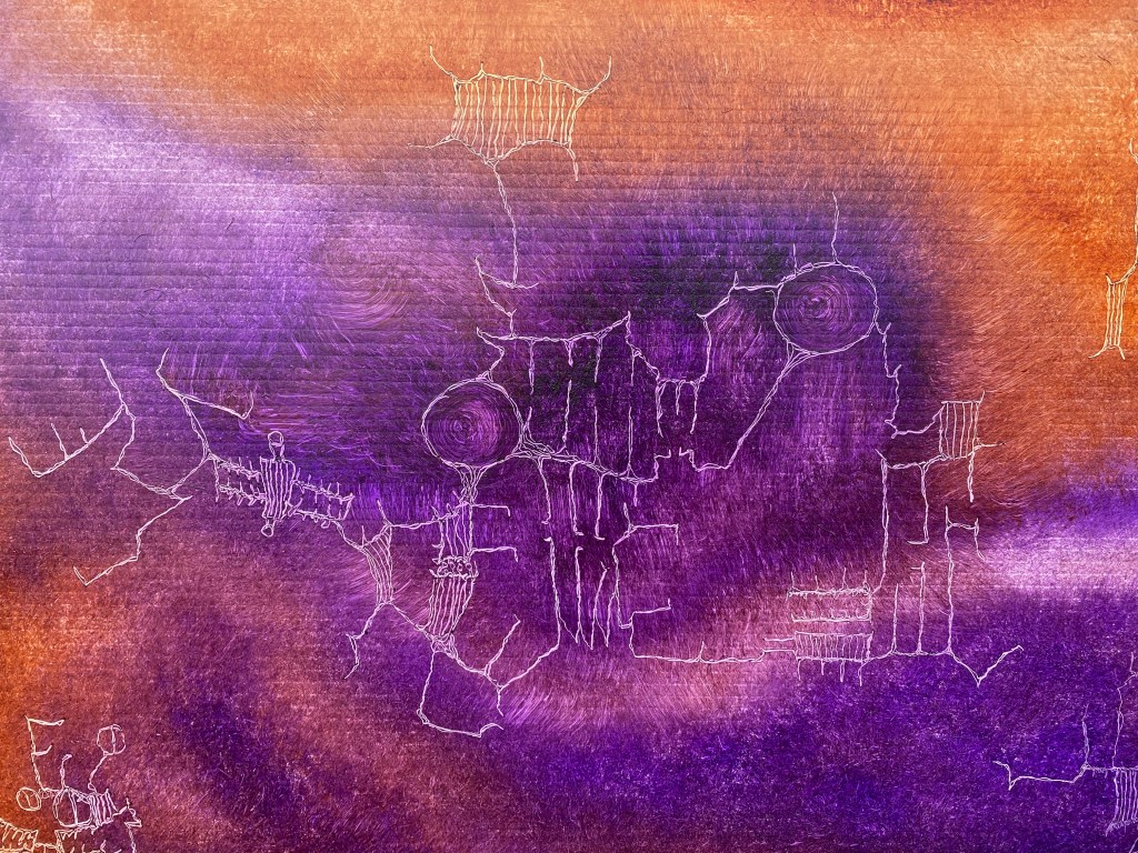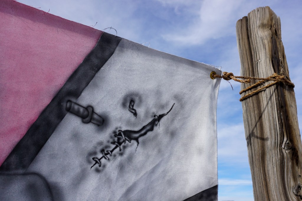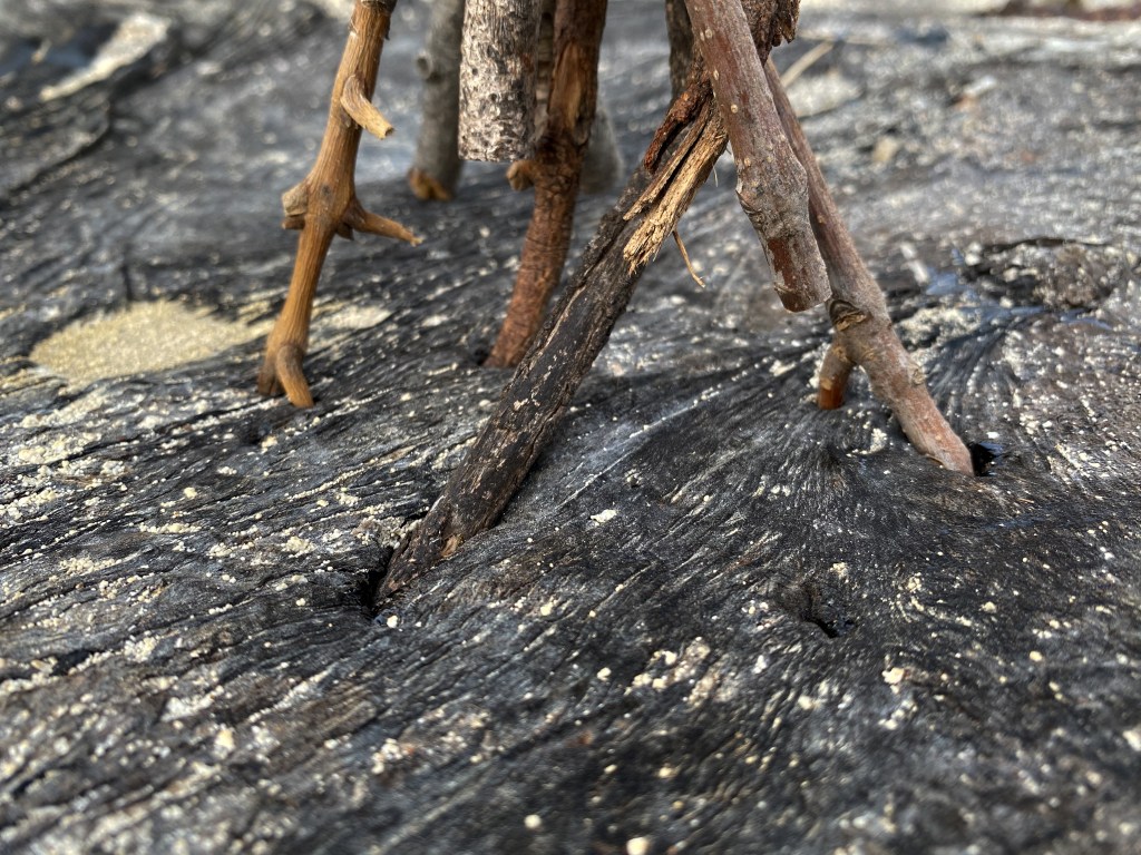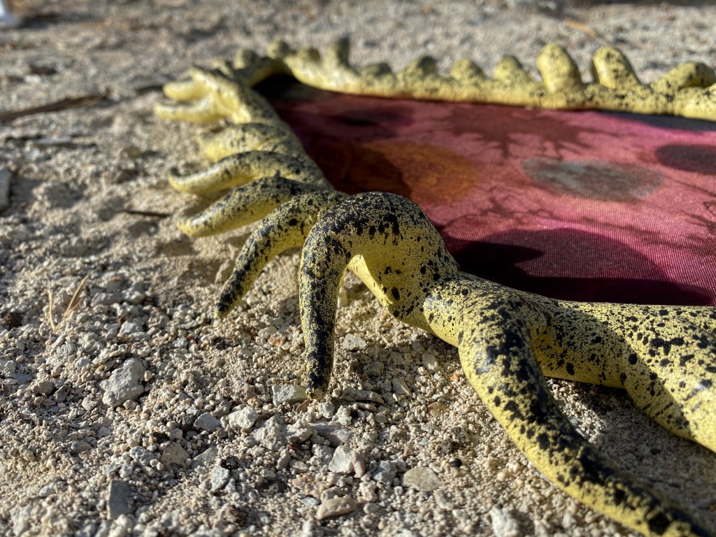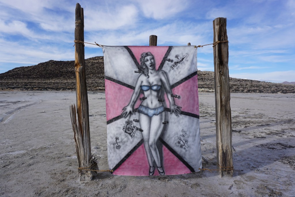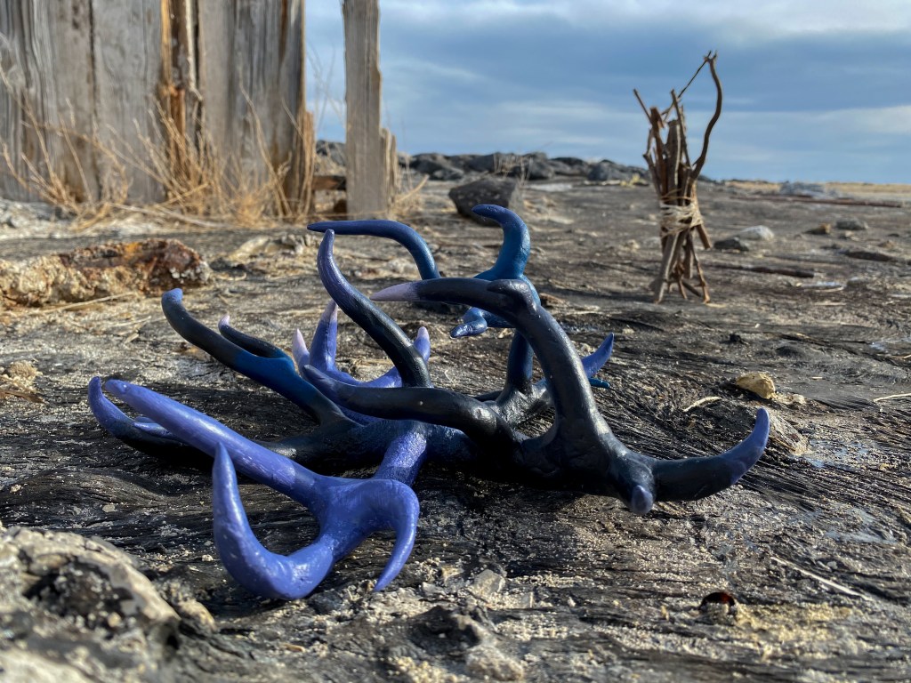 A fort-like, roofless structure juts out from the flat saline sands, situated about 150 yards south of the large hill that once spewed lava, then tumbled itself down, lower and lower, kissing the earth with as many spreading and dividing grains as possible. The nimble lake waves used to lap against it, but have crawled further and further away for four decades now. The fort stands at the foot of the flattening hill, the shoreline of the evaporating lake, and sits as the source of fossil liquid. It is the eye of the slowest storm. The wood grains of the structure have sunken and puckered. Seeping oil moves even slower than the ever-receding shoreline, determined to make a thick, cursed, black lake of its own. Bodies slowly chase and bind each other between seasonal tides as the hexed structure peers from between pillars at each of their shared, shallow, raspy breaths as the sun runs down the lake’s throat.